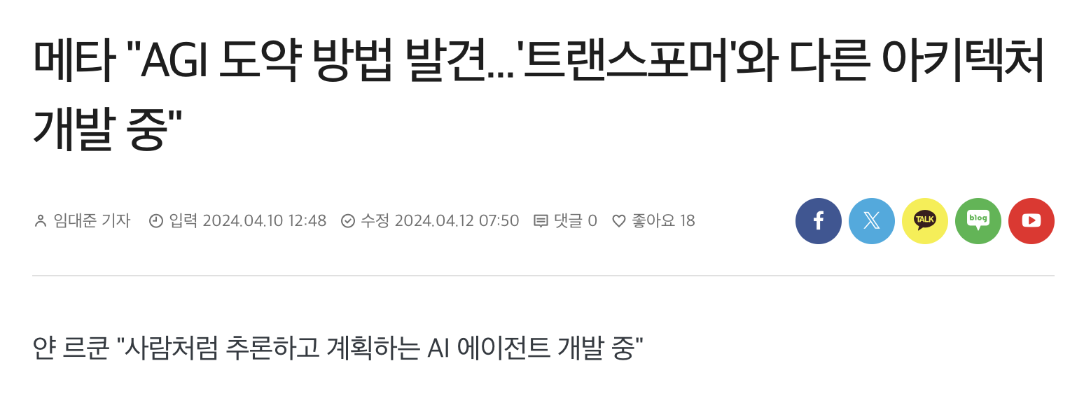GPT가 내게 어떤 존재가 되는지는 내가 정하는 것이 아닐까? AI의 윗 단계인 AGI에 대해서 우려하는 목소리를 심심치 않게 볼 수 있다. 1~2년 내에 AGI가 완성될 것이라는 말도 나오고 있고, 메타에서는 AGI로 가는 새로운 모델 아키텍처를 제시했다.